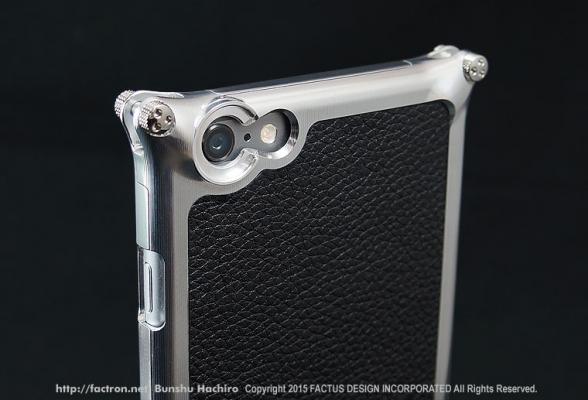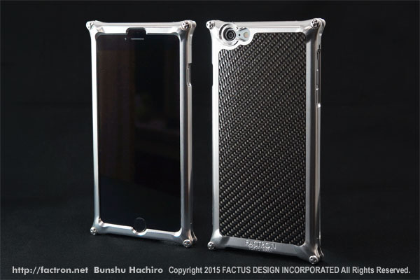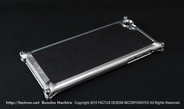 2007年に始まったFACTRONのファーストモデルからの継承されたデザイン。ジュラルミンと超々ジュラルミンを削り出した、メタルカバーにバックパネルを組み合わせたスマートフォンジャケット。特別にデザインした3つ穴のオリジナルスペシャルネジで固定しています。