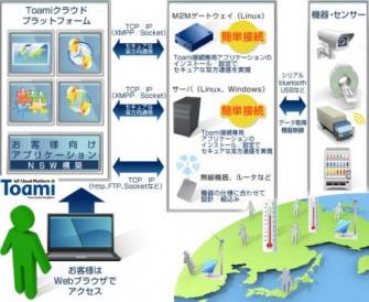 NSWの『Toami』は、M2M/IoTサービスを開発・構築するための専用プラットフォームです。デバイス管理やデータ管理、外部連携機能などを網羅したノンプログラミング開発基盤により、開発効率の大幅な向上とコスト削減を実現しています。
