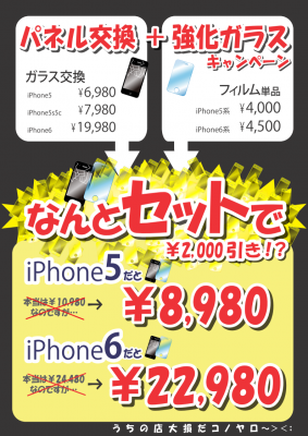 始めるとともにiPhoneガラス割れ修理+強化ガラスキャンペーンを開始致しました。