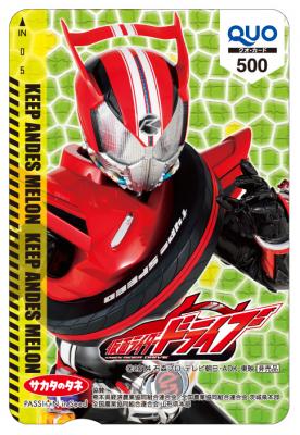 キャンペーンでは、応募者の中から抽選で500名様に「仮面ライダードライブ オリジナルQUOカード」が当たる“ダブルチャンス”も実施。このQUO カードは、『アンデスメロン キャンペーン』でしか手に入らない大変貴重なものとなっています(※対象は三大産地の賞品の当選者以外になります)。
