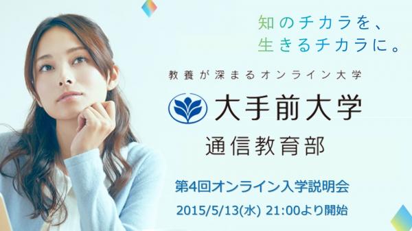「教養が深まるオンライン大学」大手前大学通信教育部は、5月13日(水)21時に、Ustreamによるオンライン入学説明会を開催いたします。