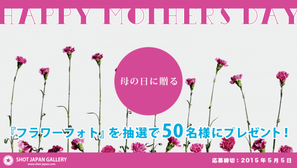 フォトグラファーのためのオンラインギャラリー『SHOT JAPAN GALLERY(www.shot-japan.com)』を運営する、株式会社SHOT JAPAN(東京都渋谷区 代表取締役:島原創)は、SHOT JAPAN GALLERYオリジナルのフラワーフォト、オリジナル・ランチョンマットを抽選で50名様にプレゼントする母の日キャンペーンを実施いたします。