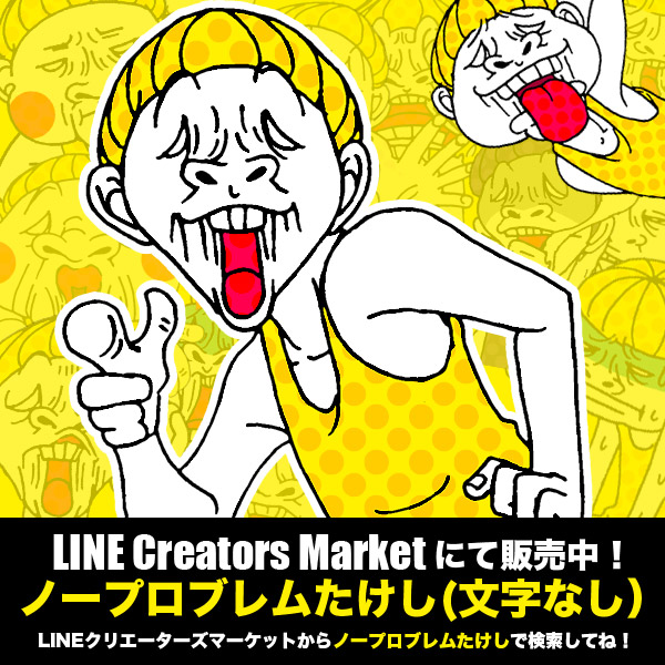 今回の「ノープロブレムたけし」はイラストのみで構成。文字がないので使う人の自由な解釈でのコミュニケーションが可能になりました。表情豊かなキャラクターを自由に使ってコミュニケーションを楽しみたい方に使って頂きたいスタンプとなっています。