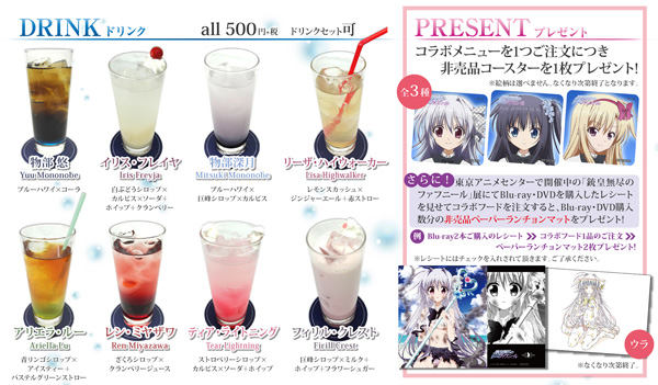 イリスや深月など、ヒロイン達をイメージしたちドリンク、フード、スイーツと全12種類のコラボメニューをご用意。