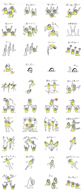 「シンクロナイズドスタンプ」は息ぴったりないろいろポーズやフォーメーションであいさつやお礼などの日常会話から、ツッコミなどを表現が可能です。面白いポーズやシュールなポーズで相手をクスっとさせます!