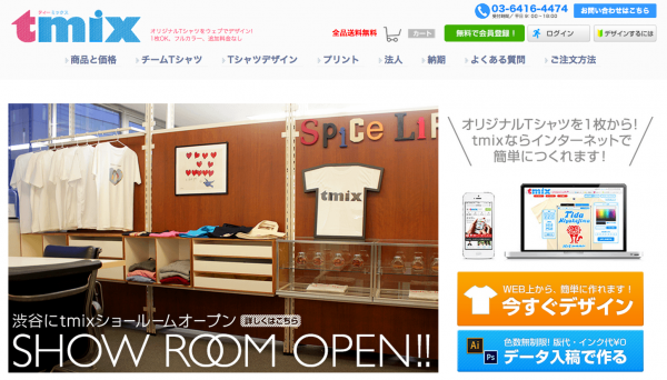 カスタマイズEC『tmix(ティーミックス)』( http://tmix.jp/ )はオリジナルTシャツの作成が1枚から製作可能、送料無料、即日発送が可能なサービスです。