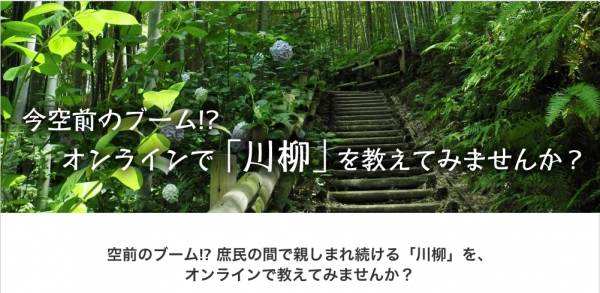 この度、常日頃楽しみセンスを磨いていたり、プロやセミプロとして活躍している川柳を詠む方、日本の伝統を現代技術で伝えてみたい方々を対象に「オンライン川柳講師募集ページ」をリリースしました。