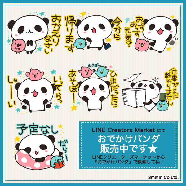 「おでかけパンダ」は弊社オリジナルのスタンプです。パンダとヒヨコをモチーフにしたシンプルでかわいらしいスタンプです。パンダと2匹のヒヨコがLINEのトークを可愛らしく彩ります。