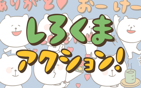 「しろくまアクション!」は誰でも使いやすいシロクマのキャラクターです。日常のあいさつ、お返事、お祝い、喜怒哀楽などを2コマ、4コマでアクションします。大げさに感情表現をしたいときにオススメです!