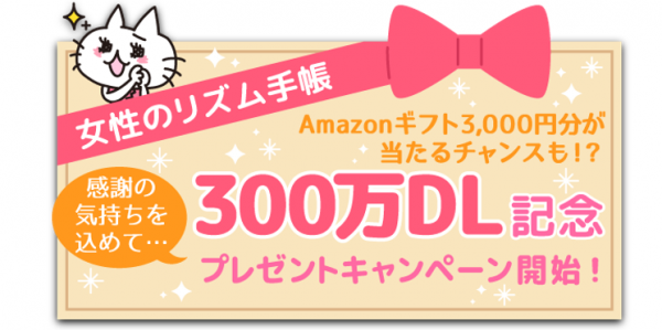(以下HighLab、本社:東京都渋谷区、代表取締役社長:杉山浩一)は、女性向けヘルスケアアプリ『女性のリズム手帳』累計300万ダウンロード突破を記念し、平成27年5月11日から平成27年6月17日までの期間中、アプリユーザを対象に「300万DL突破記念キャンペーン」を実施いたします。