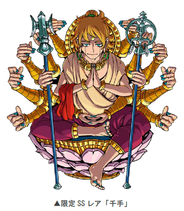限定SSレア「千手」や、限定Sレア「鬼狛犬」「鬼行者」「子鬼地蔵」と交換することができます。