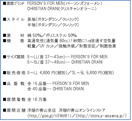 青山商事株式会社(本社:広島県福山市/代表取締役社長:青山理(おさむ))は、今夏のクールビズ企画商品として、炎天下でも快適に着用するため、6つの機能を持ったドレスシャツ『エクストラクールライト』(長袖/半袖)を開発、5月16日(土)から全国の「洋服の青山」および「洋服の青山オンラインストア」http://store.y-aoyama.jp/で販売します。