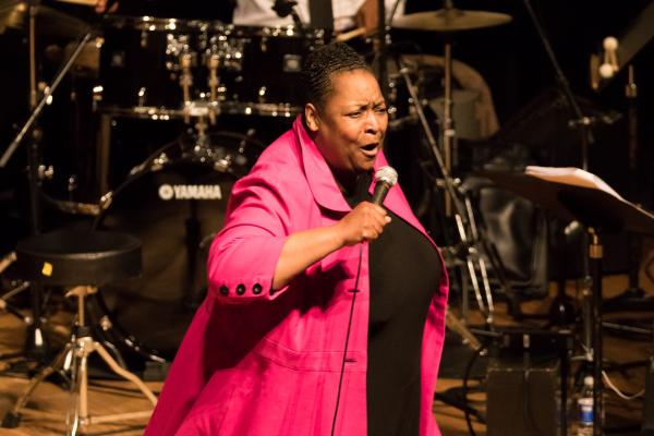 アイリス氏のパワフルな歌声とエネルギーに圧倒され、来場された約400名の皆さまも大熱唱し、「OH HAPPY DAY!!」と館内は歌声の渦に包まれていきました。途中、ステッピングダンスという独特なダンスにも挑戦し、またゲストのライブ演奏を聴く事を通じ、ゴスペル音楽の背景にある神さまへの祈りについても感じる事ができました。
