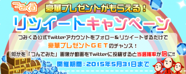 つみくる公式Twitterアカウントをフォロー&リツイートするだけで豪華プレゼントがもらえます。