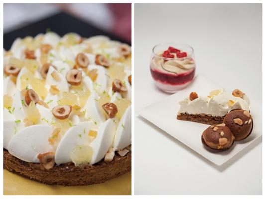 - ミシャラクシェフによるスイーツ 左:「FANTASTIK YUZU NOISETTE(ゆずとヘーゼルナッツのファンタスティック)」、右:「PARFAIT FRAMBOISE REGLISSE(甘草とフランボワーズのパルフェ)」、「MC BURGER(MCバーガー)」、「FANTASTIK YUZU NOISETTE(ゆずとヘーゼルナッツのファンタスティック)」 -(上・画像)