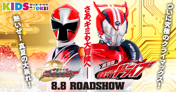 「劇場版 仮面ライダードライブ サプライズ・フューチャー」「手裏剣戦隊ニンニンジャー THE MOVIE 恐竜殿さまアッパレ忍法帖!」は2015年8月8日(土)ロードショー!