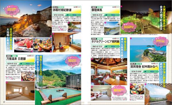 1万円前後のリーズナブルなお値段とともに、観光地へのアクセスの良さや、部屋から見える景色、美味しいお料理、良質な温泉、快適なサービスなど、旅の満足度をあげるポイントを重視して厳選された宿が400軒以上も掲載されています。この一冊で、日本全国どこへ旅行するのにも便利にお使いいただけます。
