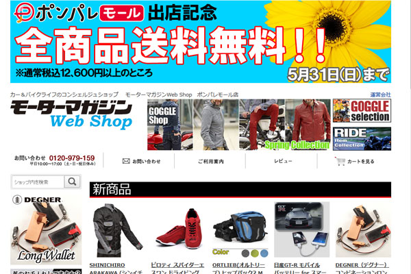 2015年5月18日(月)、モーターマガジン Web Shopは、楽天市場、Yahoo!ショッピングに続き、株式会社リクルートホールディングスが運営する、ポンパレモールに出店しました。これにより、国内の主要共通ポイントである、「Rポイント・Tポイント・Ponta」のいずれもお使いいただけるチャネルが整いました。