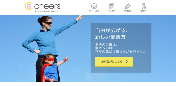 「チアーズ」は、日本初、リモートワーク※1によって、事業の成長に必要な人員を採用できない企業と「子育ての事情で週5日の出勤は難しい」などの理由でキャリア選択が出来ないママを応援する人材サービスです。柔軟な働き方が出来る案件のみを掲載し、「ママの新しい働き方」を提案致します。