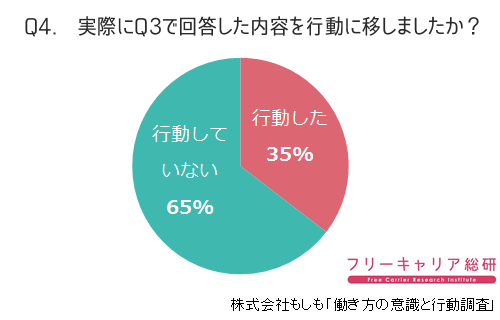 「上記で回答した内容を実際に“行動”に移しましたか?」と質問したところ、「行動した」と回答したのは35%。残り65%の人は「行動していない」と回答し、3人中1人が行動に移していることが分かりました。