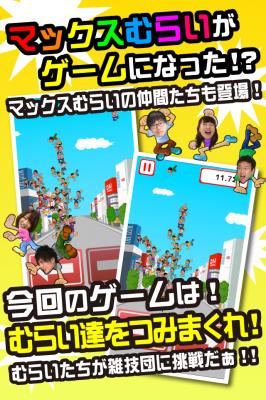 「マックスむらい雑技団」は子供から大人まで誰でも簡単に楽しめるシンプルなiPhone、Android用ミニゲームです。