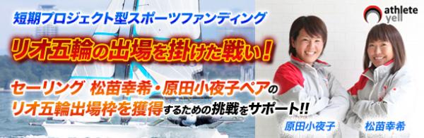 2016リオ五輪出場を目指すセーリング・松苗幸希&原田小夜子ペアの競技資金(小口ミニスポンサー)の