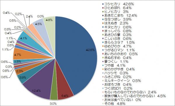 いま食べているお米の銘柄は「コシヒカリ」を食べていると回答した人が全体の約4割を占めました。
