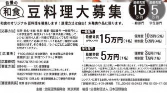 栄養バランスに優れたオリジナル「和食」豆料理を募集いたします。