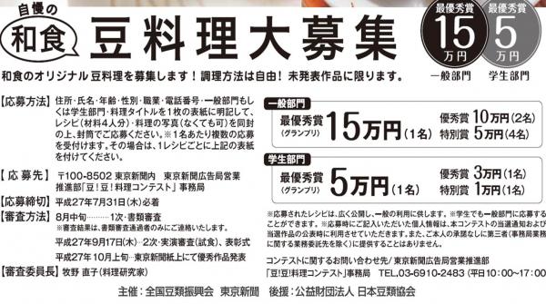 【お問合せ先】東京新聞広告局営業推進部「豆!豆!料理コンテスト」事務局