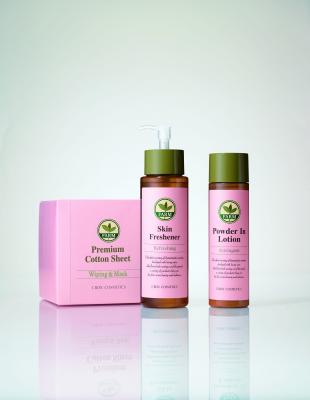 シリーズを開発。化粧水・コットンシート・収れん化粧水(本体価格2,500~5,000円)の