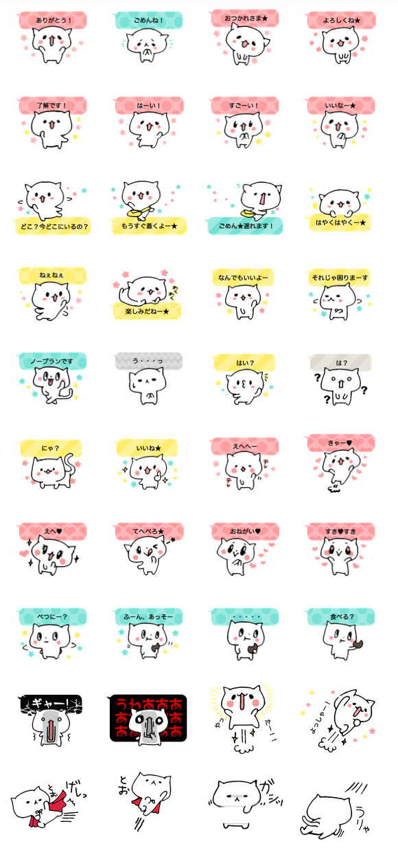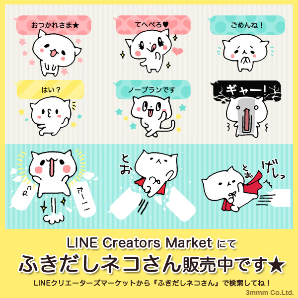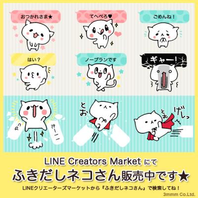 「ふきだしネコさん」は弊社オリジナルのスタンプです。白い猫をモチーフにしたスタンプです。