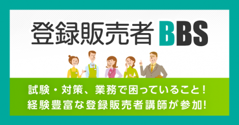 登録販売者は非常に専門性の高い資格であり、求められる知識の幅も広いため、多くの経験が必要です。より効率的、効果的に登録販売者としての習熟度を上げていただくため、登録販売者BBSをぜひご活用いただきたいと願っております。