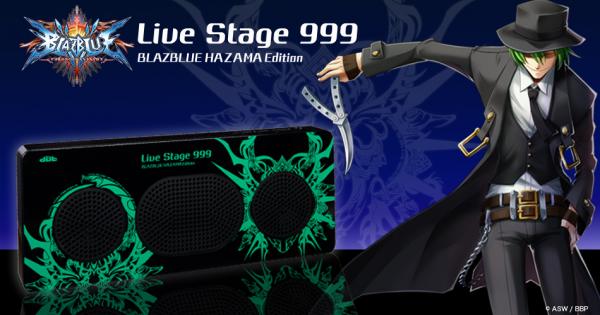 本商品は、Bluetoothスピーカー「Live Stage 999」に大人気の2D対戦格闘ゲーム「BLAZBLUEのキャラクター「HAZAMA(ハザマ)」をイメージしたカラーと同キャラクターのデザインを採用し、さらに特別限定ステッカーを配しています。