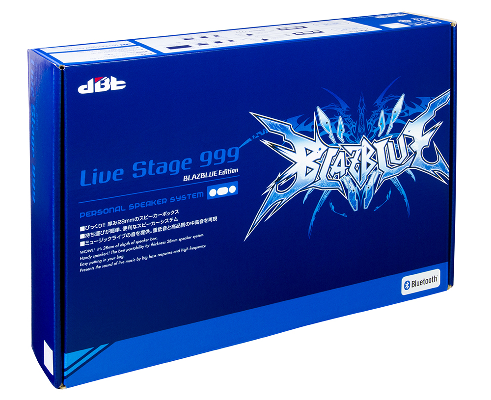 ディービーテクノロジー株式会社は、アークシステムワークス株式会社とコラボレーションした数量限定商品「Bluetoothスピーカー Live Stage 999 BLAZBLUE HAZAMA Edition」をオープン価格(実勢価格15,000円+税 前後)にて5月26日(火)に発売致します。