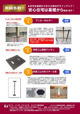 ・防振ゴム基礎パッキン(住宅用振動軽減対策用の防振ゴム素材の基礎パッキンで15年間の販売実績)