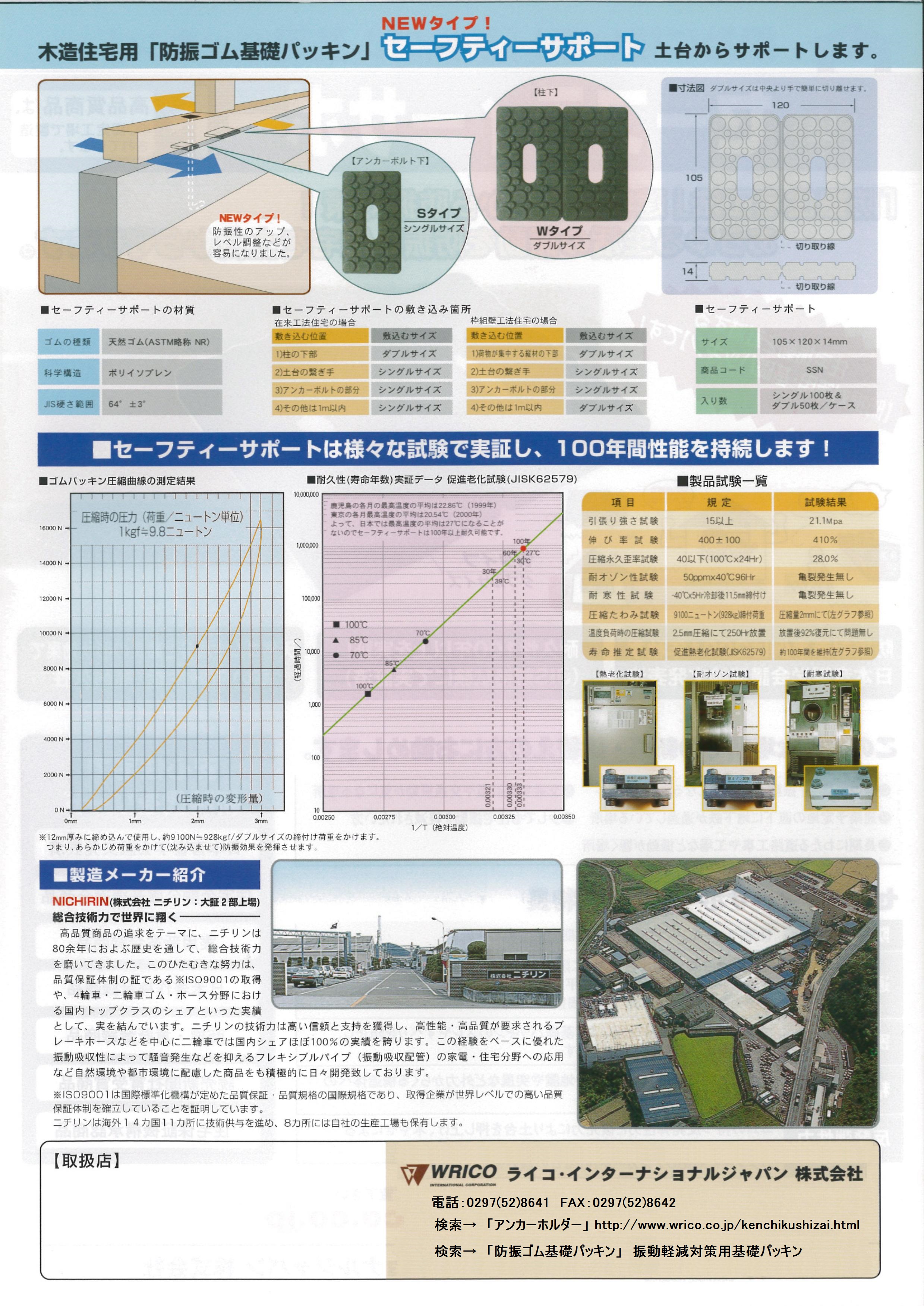更に同社のロングラン商品である「防振ゴム基礎パッキン、防振ゴム付きスチール束」が鉄道沿線、地下鉄の上部地など交通振動対策などに実績多数の「防振ゴム建築部材」が根強い人気で只今好評販売中です。詳細はホームページよりご覧ください。検索→「防振ゴム基礎パッキン」までアクセスください。お気軽にお問合せください。