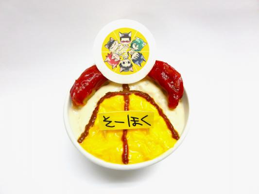ホワイトソースやデミグラスソース、ふわふわの卵で総北のジャージを表現しています。