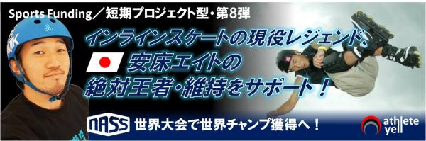 インラインスケート世界大会(NASS)で絶対王者の威厳を示す安床エイトの競技資金(小口ミニスポンサー)を