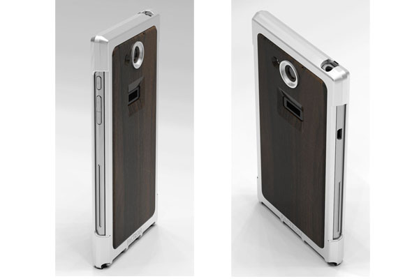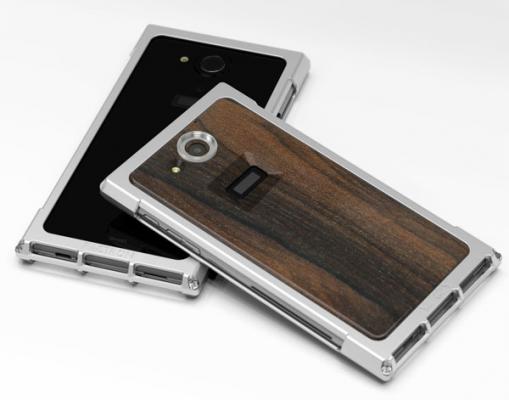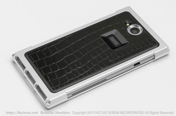 ジュラルミンと超々ジュラルミンを削り出した、メタルジャケットにバックパネルを組み合わせたスマートフォンジャケット。特別にデザインした3つ穴のオリジナルスペシャルネジで固定しています。
