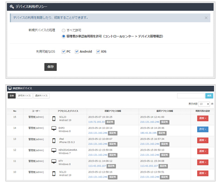 デバイス利用ポリシーに合わせてアクセスするデバイスが制御できます。
