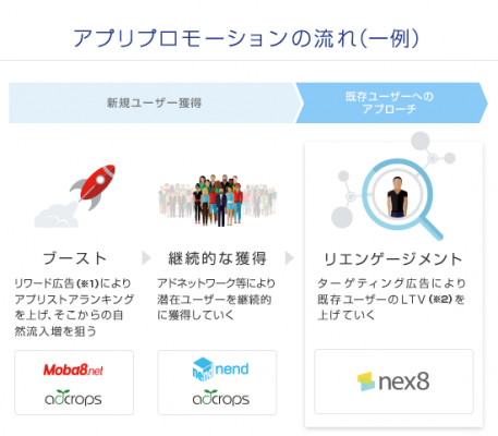 nex8では、今後アプリプロモーションにおいてリエンゲージメント広告のニーズが高まっていくことに期待して、より精度の高いターゲティング配信をご提供できるよう、務めてまいります。