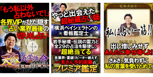 ・アプリ名称:【怖いほど当たる】婆っちゃ霊視占い◆天縁霊視【阿部華久】
