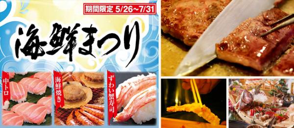 大江戸温泉物語グループ(商号:大江戸温泉物語株式会社 所在地:東京都中央区日本橋本町1-9-4 代表取締役社長:森田満昌)の「ホテル鬼怒川 御苑」(栃木県日光市藤原1-1 )では、5月26日(火)~7月31日(金)の期間限定で、料理長オススメの「海鮮まつり」を開催しています。ライブキッチンをフル稼働して、焼きたて・握りたてをご提供。出来たての美味しさを食べ放題でお楽しみいただけます。