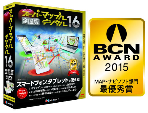 ※BCN AWARD 2015のMAP・ナビソフト部門にて「スーパーマップル・デジタル15」が「最優秀賞」を受賞