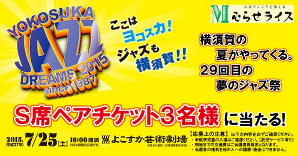 ■キャンペーン名:「『ヨコスカ ジャズ ドリームス 2015』S席ペアチケットが3名様に当たる!」