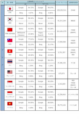いずれの国と地域においても、Webプロモーションを行う際には、トップシェアを維持しているGoogleの対策を行うことが重要であると考えられます。