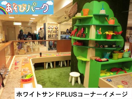 “さらさら”の抗菌処理をした「ホワイトサンド」すなばに加え、オーストラリア産ホワイトサンドを日本国内で加工した、水に湿らさなくても自由な形に固まる砂「ホワイトサンドPLUS」のコーナーもご用意。お子さまの想像力と創造性をさらに豊かにします。