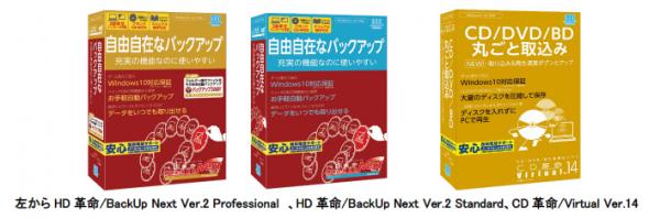 ファイルの種類や更新日で絞り込んでのバックアップ/復元機能、指定フォルダの同期・ミラーリングが可能な「バックアップ3WAY」を搭載し、フル機能を備えた「HD革命/BackUp Next Ver.2 Professional(通常版パッケージ9,000円+消費税)」と、バックアップの標準的な機能を備えた「HD革命/BackUp Next Ver.2 Standard(通常版パッケージ6,800円+消費税)」の2つのタイプを用意しています。乗り換え/優待版、アカデミック版、ダウンロード版の用意もあります。