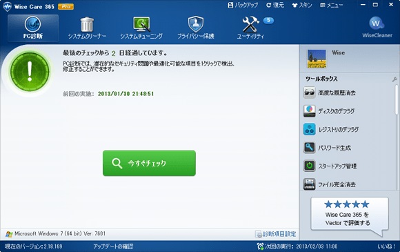 コンピューターの診断、最適化、高速化が、この 1本で OK!