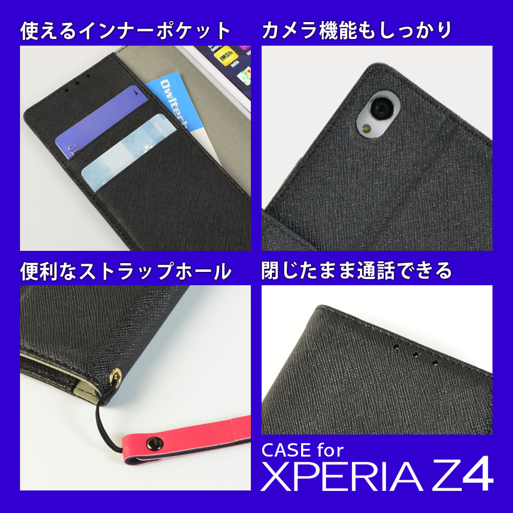 iPhone用ケースとして好評の手帳型ケースがXperia Z4専用として登場しました。手帳型ケースは液晶画面が守られているので、画面に傷が付いてしまうことも起こりにくいので、安心して使うことができます。